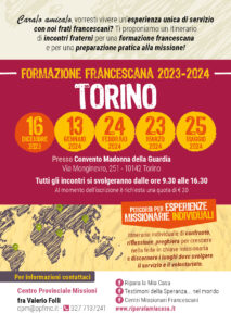 Anche quest’anno il Centro Provinciale Missionario dei Frati del nord Italia ha programmato alcuni incontri di formazione missionaria per giovani e giovani-adulti, in preparazione ad un’esperienza di missione e/o di servizio di carità durante l’estate 2024.