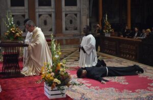 Ecco, mi sono trovato davanti all’ignoto dove lanciarmi da solo, non nel senso di abbandonato, quanto piuttosto, sotto lo sguardo amorevole di Dio e di una comunità di fratelli che pregava per me in attesa, con un silenzio sospeso, della mia scelta. Interessante è stato prendere consapevolezza di come quel giorno, sia stato un punto di non derivabilità della mia storia: impegnarmi a vivere il per sempre in un solo giorno, scegliere l’infinito nel finito, non è spiegabile, non è calcolabile.