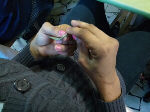 Una sera, insieme alle sorelle, aspettavamo una ragazza a Progetto Miriam per essere accolta. Subito ci siamo adoperate per preparare il letto, il necessario per la notte, spazzolino e bagnoschiuma, tutto pronto! Attenderla fino a notte fonda e non vederla arrivare fu dura. Sperimentare tutta la forza della comunità che accoglie e fa spazio insieme a tutta la durezza di un campanello che non suonava. Accanto a questo, avere il privilegio di vedere vite rifiorire pian piano, dal sentirsi oggetti allo sperimentare che sono degne di stima, tutto questo a volte mentre facevano piccoli lavoretti nel laboratorio che c’è in casa, in quel lavoro paziente in realtà ricucivano insieme pezzi della loro vita.